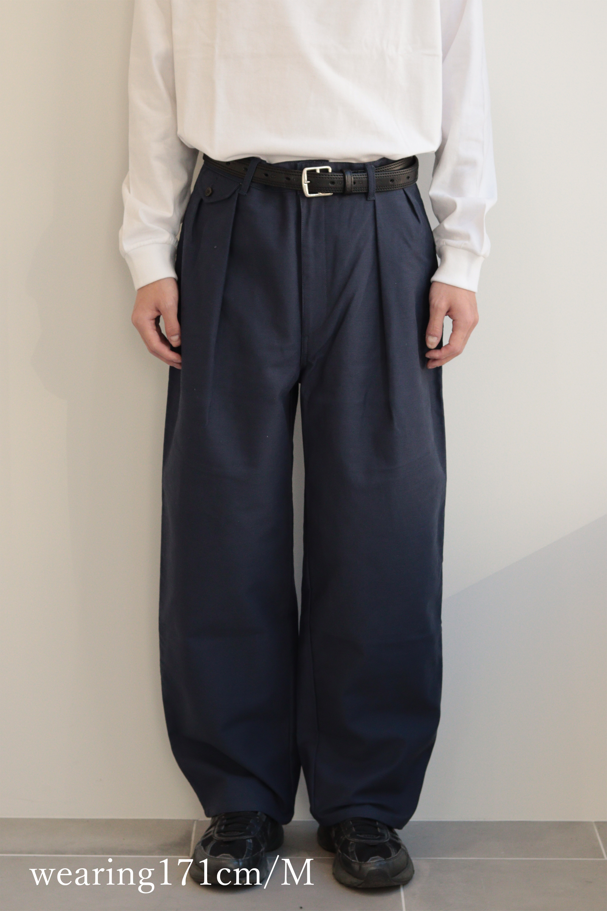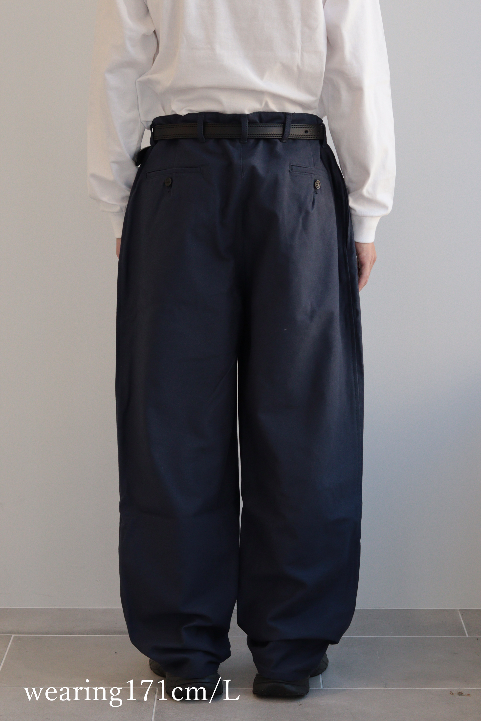 ルーズに着用しベルトでギュッと閉める履き方がtospareの提案です